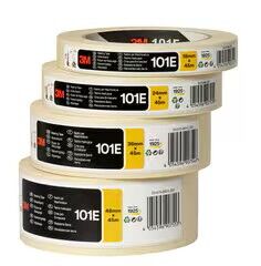 3M™ Value Masking Tape 101E is a smooth, multi-purpose crepe paper tape for room temperature indoor light-duty applications. It is ideal for non-critical paint masking, but also bundling, sealing, attaching, and other applications. Chamois color, rubber adhesive, thickness 0,12mm, this tape is designed for general use.