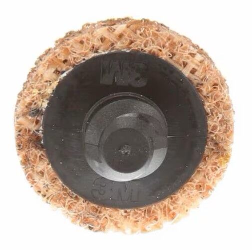 Use Scotch-Brite™ Roloc™ Surface Conditioning Disc for a range of tasks including blending, deburring, and finishing. Our non-woven discs use fast cutting aluminium oxide mineral abrasive, and are made of a fibre that conforms well to help preserve irregular or contoured surfaces, combined with efficient 3M™ Roloc™ quick-change attachment system, to support the disc during aggressive cutting and offers quick and easy change outs. The open-web fibre of the discs runs cool and resists loading while reducing the risk of part discolouration and warping. The aluminium oxide abrasives cut fast and give consistent finishing. Tough and durable, aluminium oxide abrasive continually self-fractures during use, to expose fresh cutting edges. By comparison, traditional abrasives, such as garnet, quickly wear down with use. Its high cut-rate, hardness, strength, and low heat retention makes aluminium oxide mineral a popular choice for grinding, sanding and finishing applications. It’s suitable for use on a wide variety of substrates in both woodworking and metalworking, including ferrous alloys. Scotch-Brite™ surface conditioning products feature abrasives incorporated into non-woven nylon or synthetic fibres. Combining abrasives with the fibres creates an abrasive system that delivers consistent results for the life of the product. The fibres are load resistant and keep the abrasive minerals cutting at high performance by limiting clogging of the fibres, which also extends the life of the disc. 3M Roloc TR quick change discs are smaller discs that have a plastic threaded button or screw designed to easily and quickly screw onto a Roloc TR disc pad for convenient change discs with a simple twist-off, twist-on action. The Roloc TR system provides a secure attachment even for heavy-duty applications, and the variety of available 3M Roloc discs allows swapping from one application to the next in seconds.