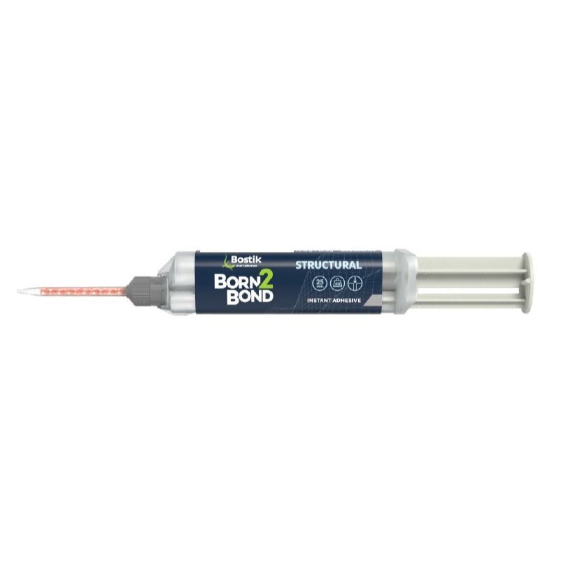 Born2BondTM Structural is a high-strength hybrid adhesive that provides a fast fixture time at room temperature while maintaining good processability and bond gaps up to 5mm. This product offers excellent bonding characteristics to a large variety of closed substrates, including aluminum, plastics and elastomers, but also porous substrates, such as woods, chipboard, leather, etc. Born2Bond Structural is formulated for applications that require mechanical and in-use environment resistance. Blend of Ethyl Cyanoacrylate, Methoxyethyl Cyanoacrylate and polyfunctional acrylate.